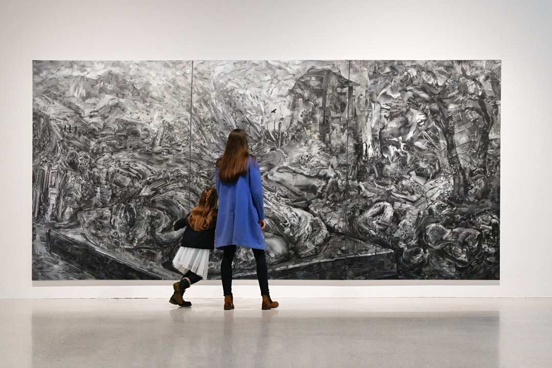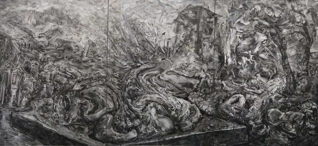 Landscape 19, 2021Analoge Collage auf Leinwand 245 x 510 cm dreiteilig Home solo exhibition 19.2 –3.10.2021 Grimmwelt, Kassel (DE)