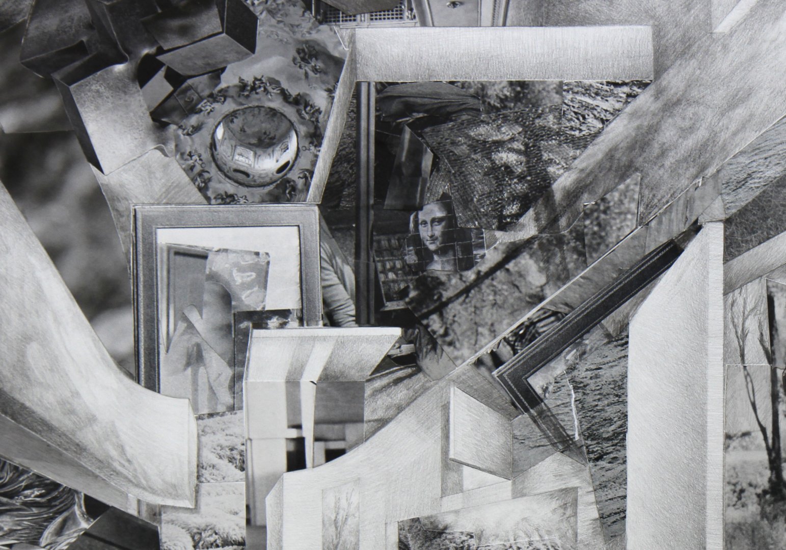 Room 5 (reflexion of analog Collage (Untitled, 2013), 2022 Zeichnung und analoge Collage auf Papier 90 x 130 cm