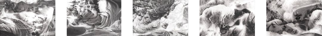 Water drawing on paper, five parts, each 6.5 x 9.7 cm