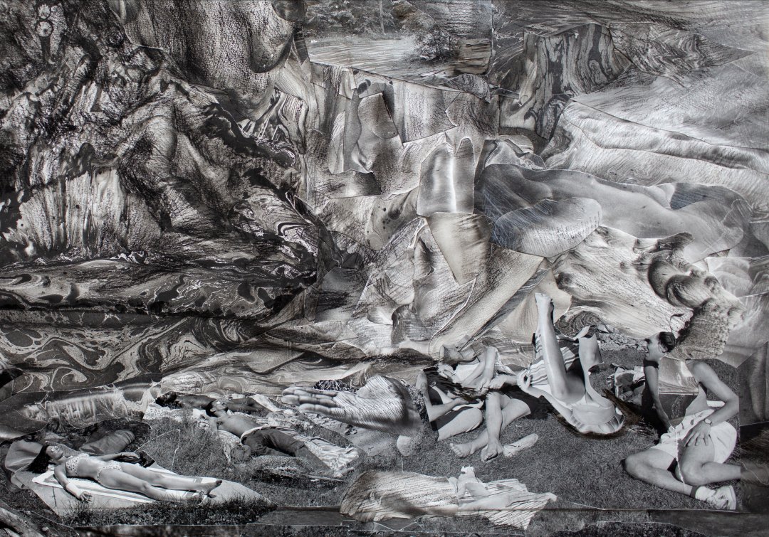 Analog Collage, waterdrawing, pencil and charcoal on paper, 36 x 52 cm