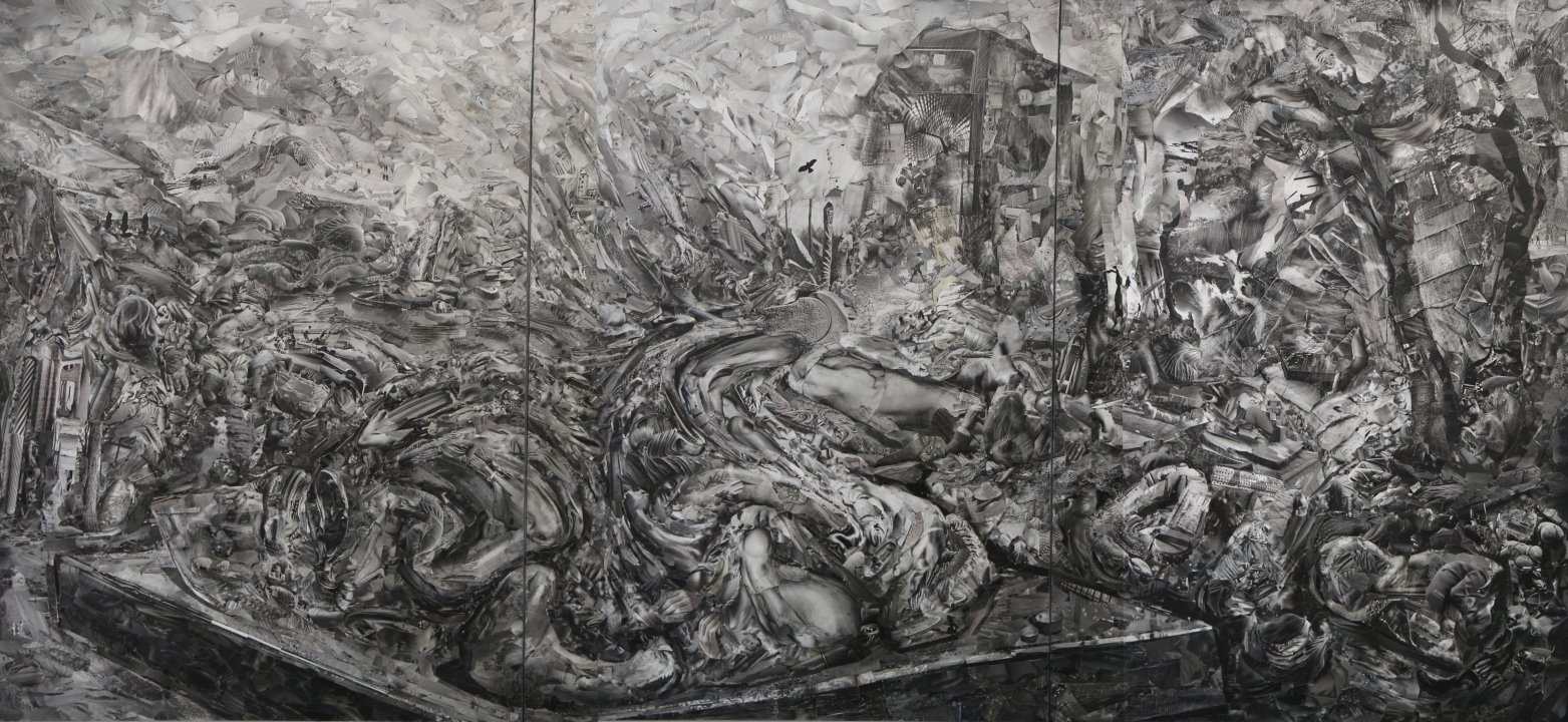 Öl, Acryl und Collage auf Leinwand mit integrierten Lautsprechern