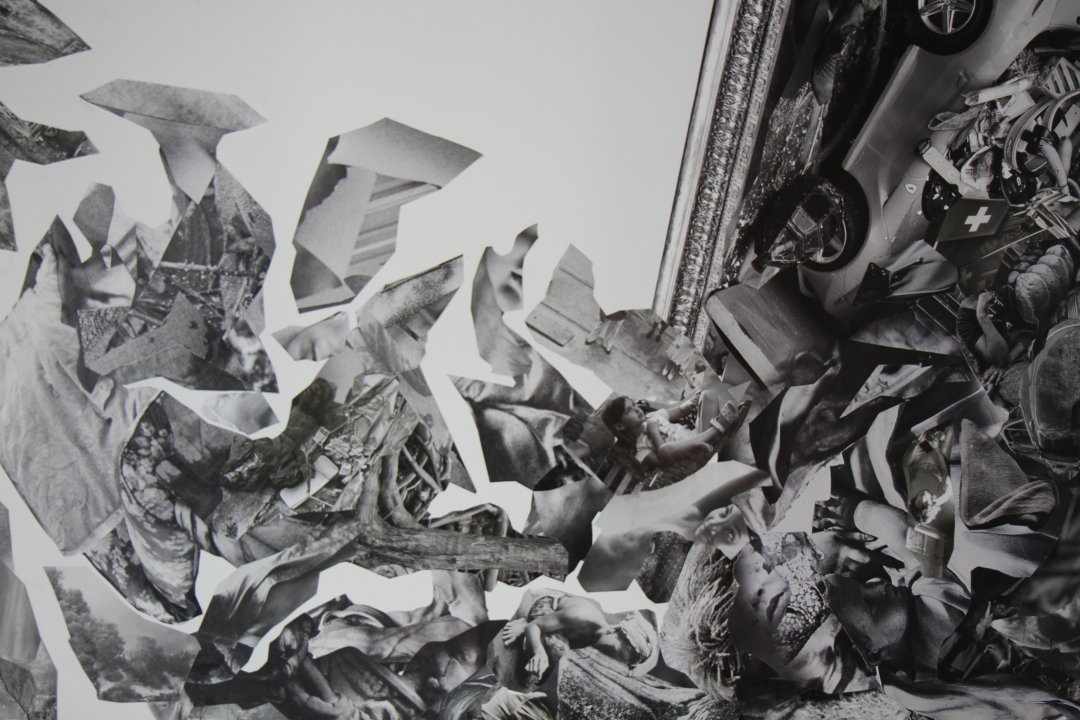 Letzte bestehende Rahmenteile deuten zwar noch den Bezug zum Bild als in sich geschlossene, rechteckige Fläche an, aber das Aufbrechen des Bildformates ist bereits in vollem Gange. Die einzelnen Informations-Cluster aus analogen und digitalen Quellen drohen teilweise gar in ihre Einzelteile auseinanderzufallen, während sich andere Gebilde schon ganz vom Bildformat losgelöst haben und als eigenwillige, wolkenähnliche Formen im Raum funktionieren.