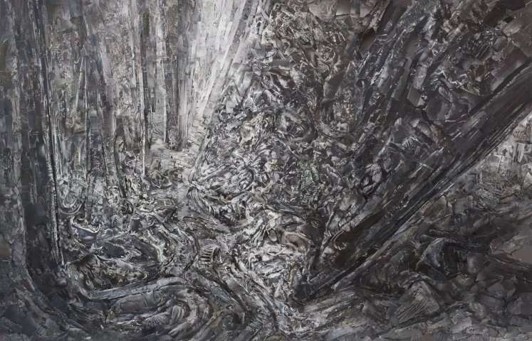 Landscape11, 2015 Öl und Collage auf Leinwand mit integriertem USB-Stick mit freiem Speicherplatz 320 x 360 cm sechsteilig