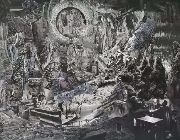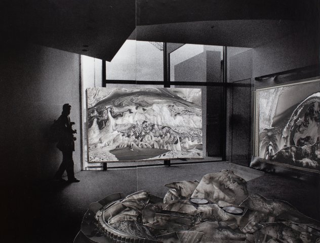 Room 8 (reflexion), 2024, 2024 Analoge Collage, Wasserzeichnung, Kohle und Bleistift auf Papier, 107 x 73 cm