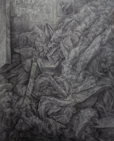 Room 9 (reflexion), 2024 Analoge Collage, Wasserzeichnung, Kohle und Bleistift auf Papier, 185 x 126 cm