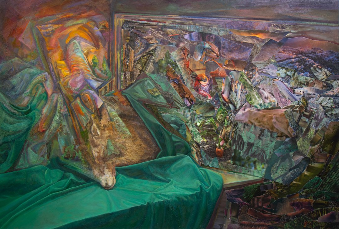 Mirror 10, 2022Öl und analoge Collage auf Aludibond 97 x 143 cm Unconditional solo exhibition 3.11 –24.12.2022 Stampa Galerie Basel