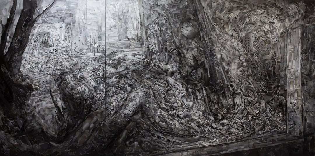 Landscape 16, 2019Analoge Collage auf Leinwand 240 x 480 cm dreiteilig Break up! solo exhibition 1.9.2020 –17.1.2021 Stadtgalerie Saarbrücken (DE)