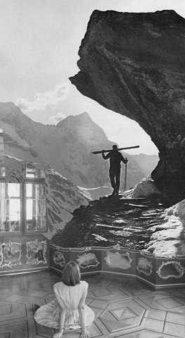 Stage 4 and Backstage of Stage 4, 2024 Stage 4 (links): Analoge Collage auf Papier / Backstage of Stage 4 (rechts): Digital Print mit AI generierten Bildfragmenten, Je 26.5 x 39 cm, zweiteilig,Stages