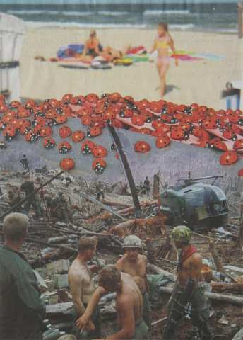 Landscape 7, 2013 Acryl, Ölpastell, Collage auf Leinwand, 2 integrierte Videodisplays ohne Ton 125 x 165 cmLandscapes