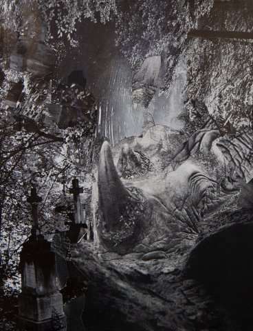 Exhibition view 2, 2024 Analoge Collage, Wasserzeichnung und Kohle auf Papier, 44 x 63 cmExhibition views